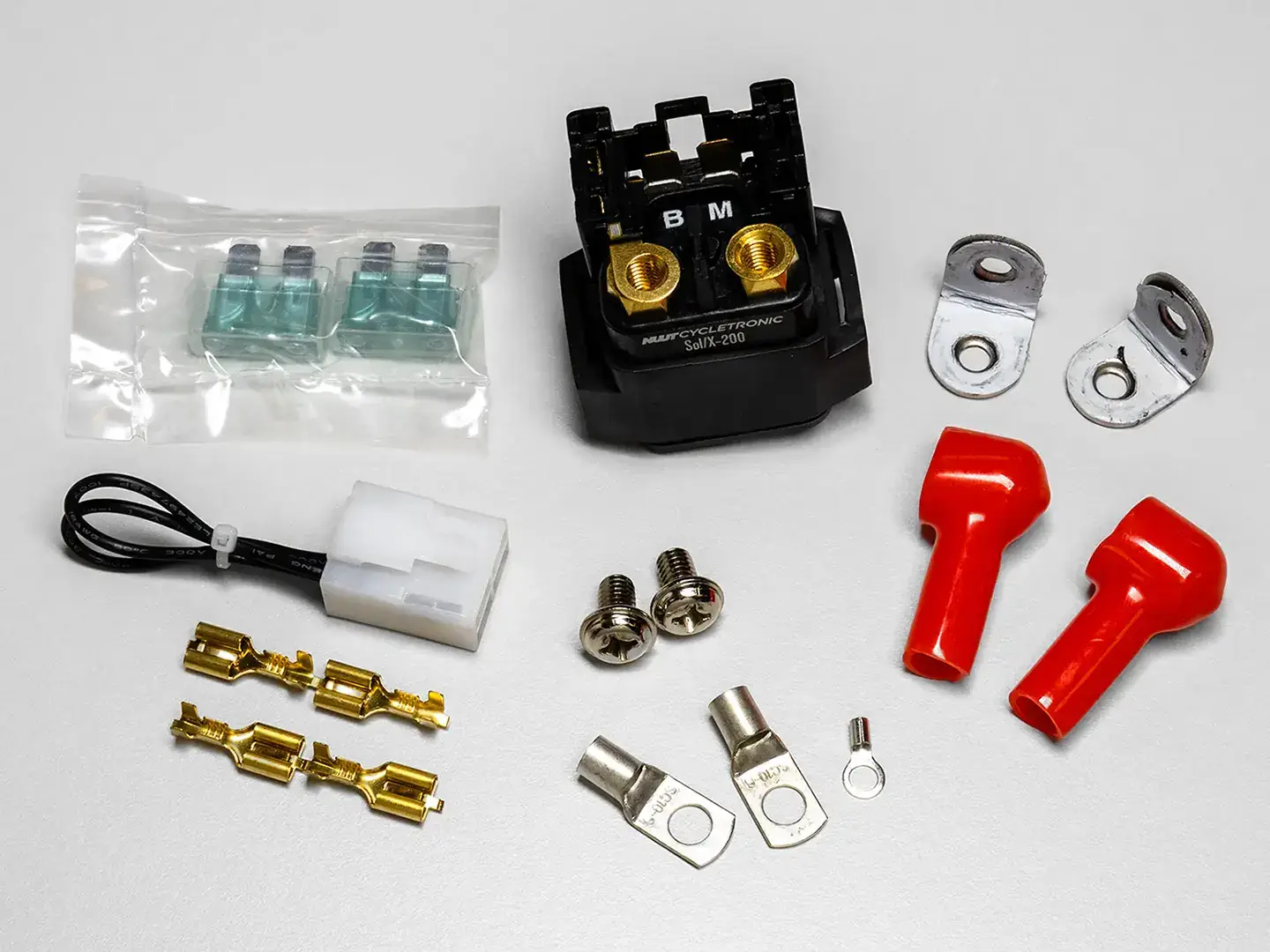 Includes wire connectors, terminal boots, ring terminals & mounting hardware