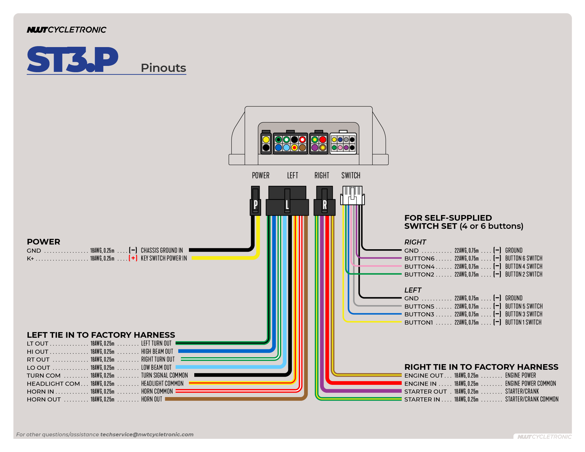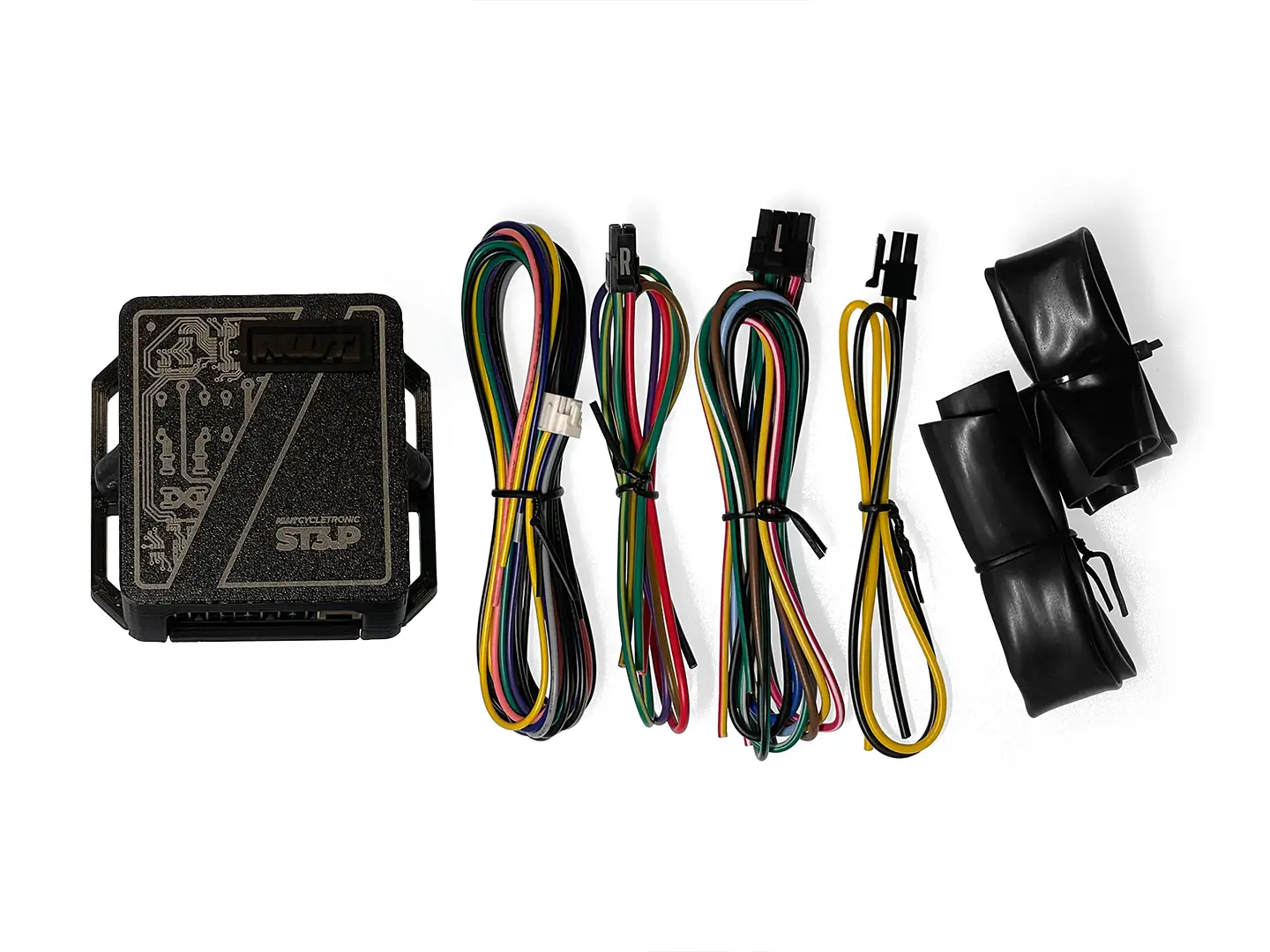 The ST3.P is a compact handlebar switch controller translator designed for easy installation. Wiring is a breeze—everything happens right near the old handlebar switch connectors. Simply remove your old switch, map the wires, and hook them up to the ST3.P. Then, wire up your new push buttons, and you’re back on the road.